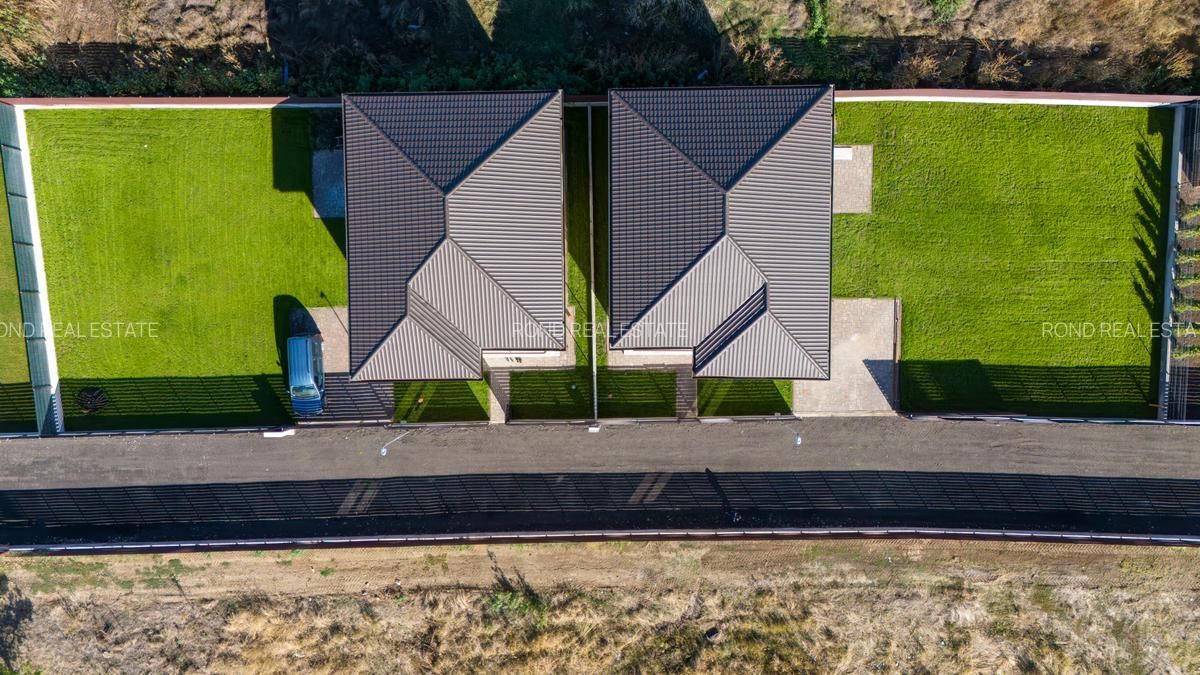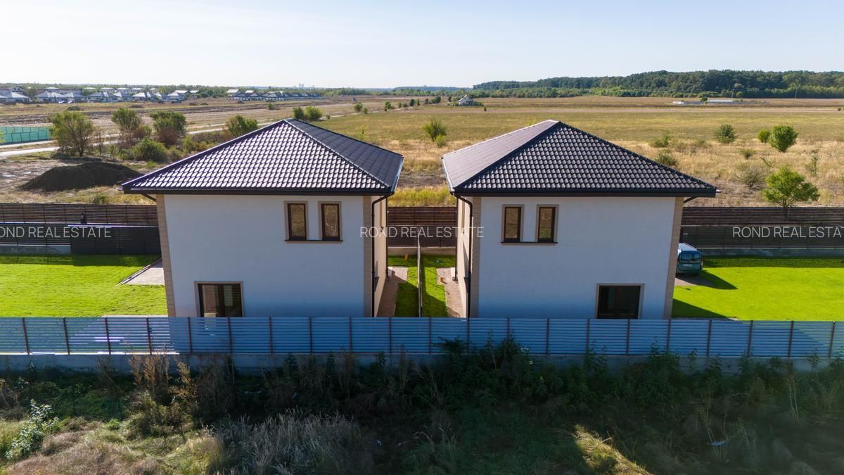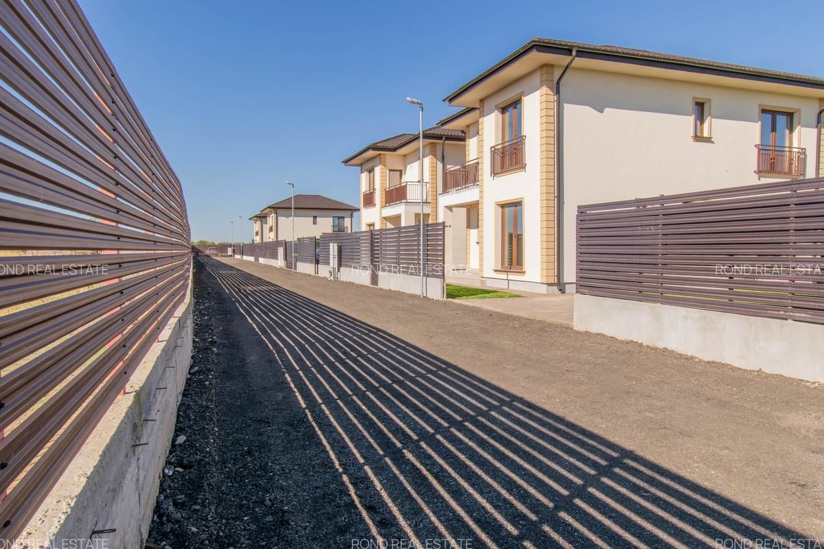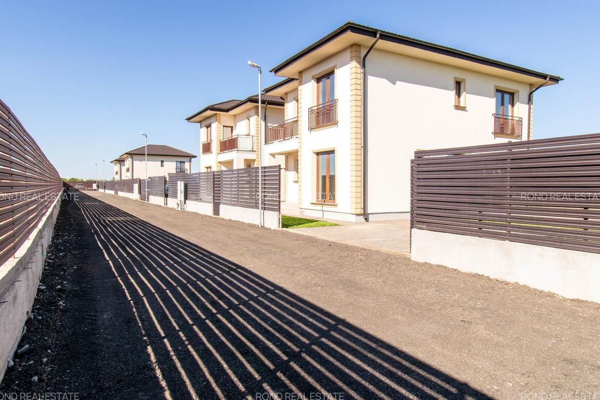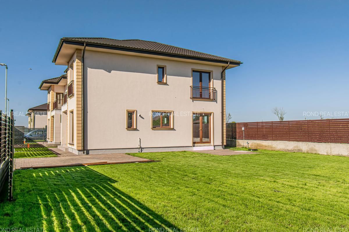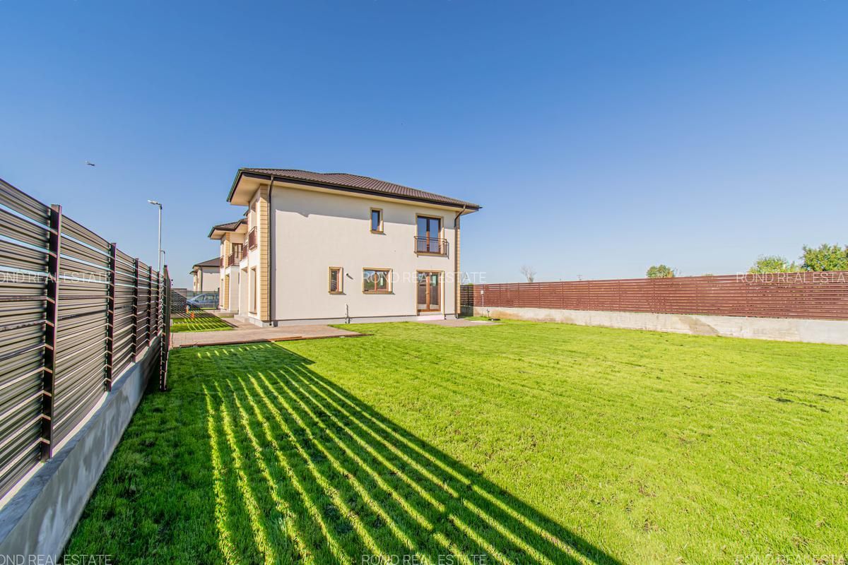 Casele se vor preda complet finalizate, cu finisaje alese de designer, curtile amenajate cu sistem de irigare automatizat, gazon , zona de parcare si terase. Suprafata construita este de 172mp, teren 530/690 (unul din loturi beneficiaza de o suprafata mai mare).