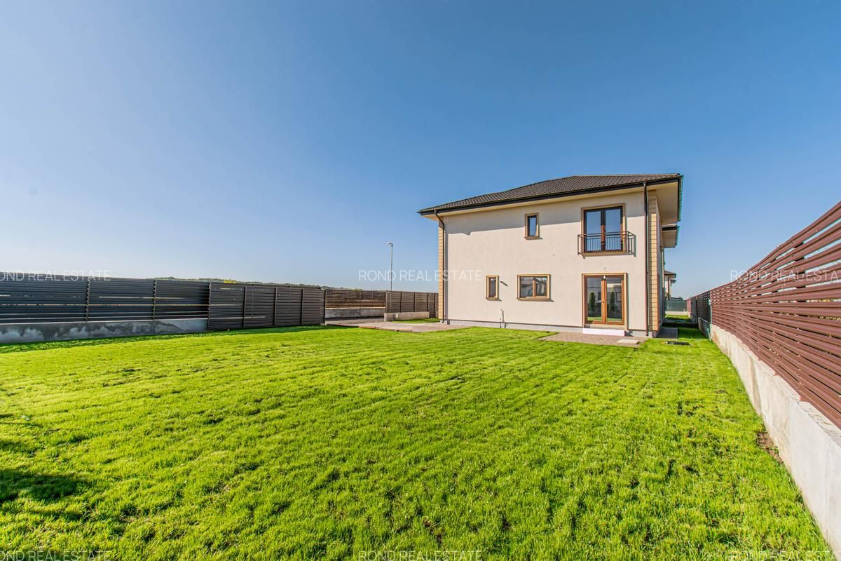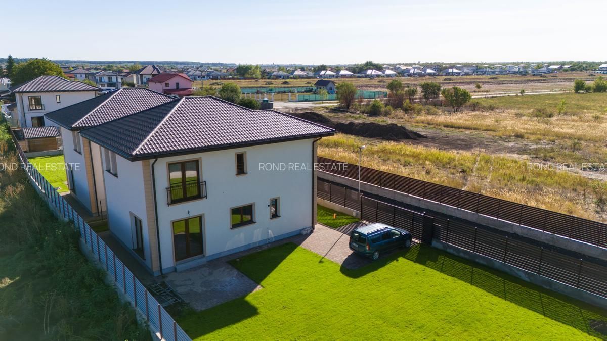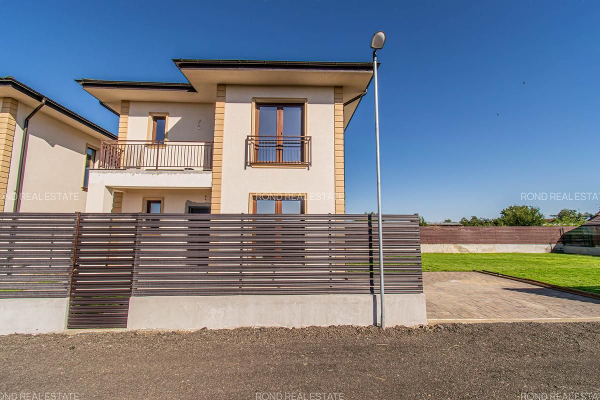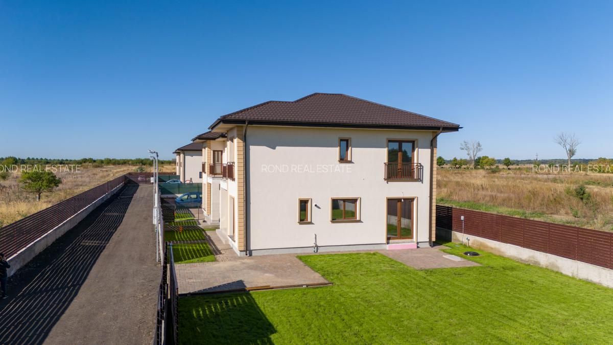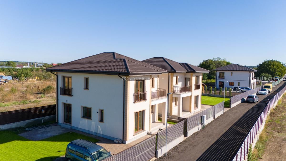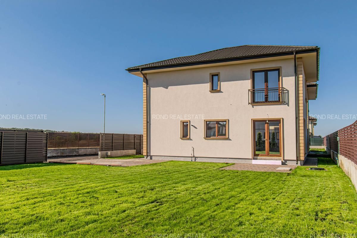 Casele se vor preda complet finalizate, cu finisaje alese de designer, curtile amenajate cu sistem de irigare automatizat, gazon , zona de parcare si terase. Suprafata construita este de 172mp, teren 530/690 (unul din loturi beneficiaza de o suprafata mai mare).