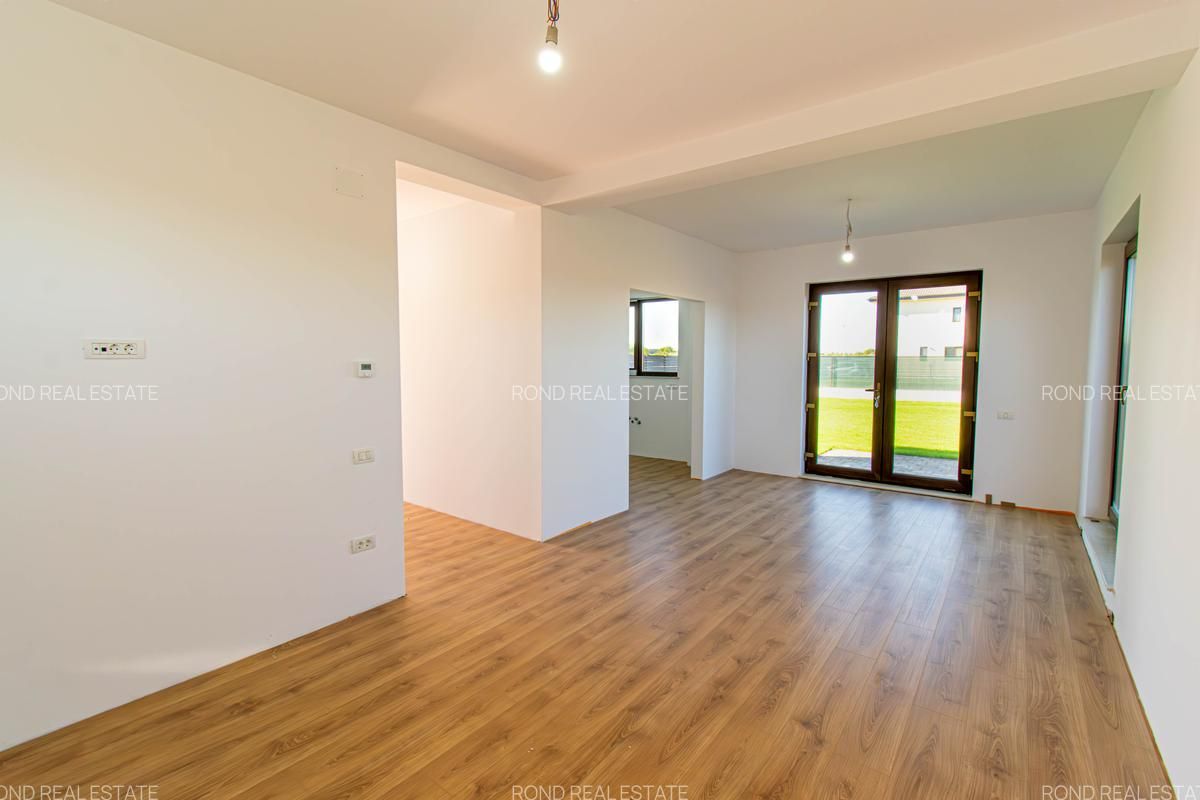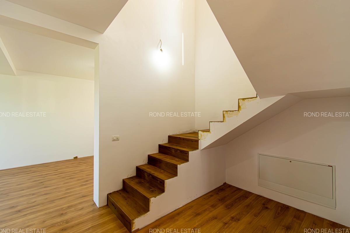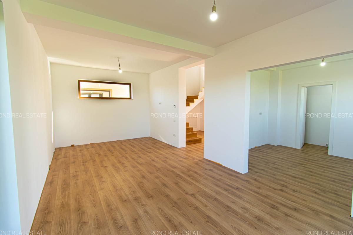 -parter: living-dinning 26mp, bucatarie semiinchisa/inchisa 10.15p, cu camera tehnica de 3.5mp, birou 8.65mp, baie cu cabina de dus 4.8mp, depozitare sub scara si o terasa care poate fi acoperita la cerere in suprafata de 14mp