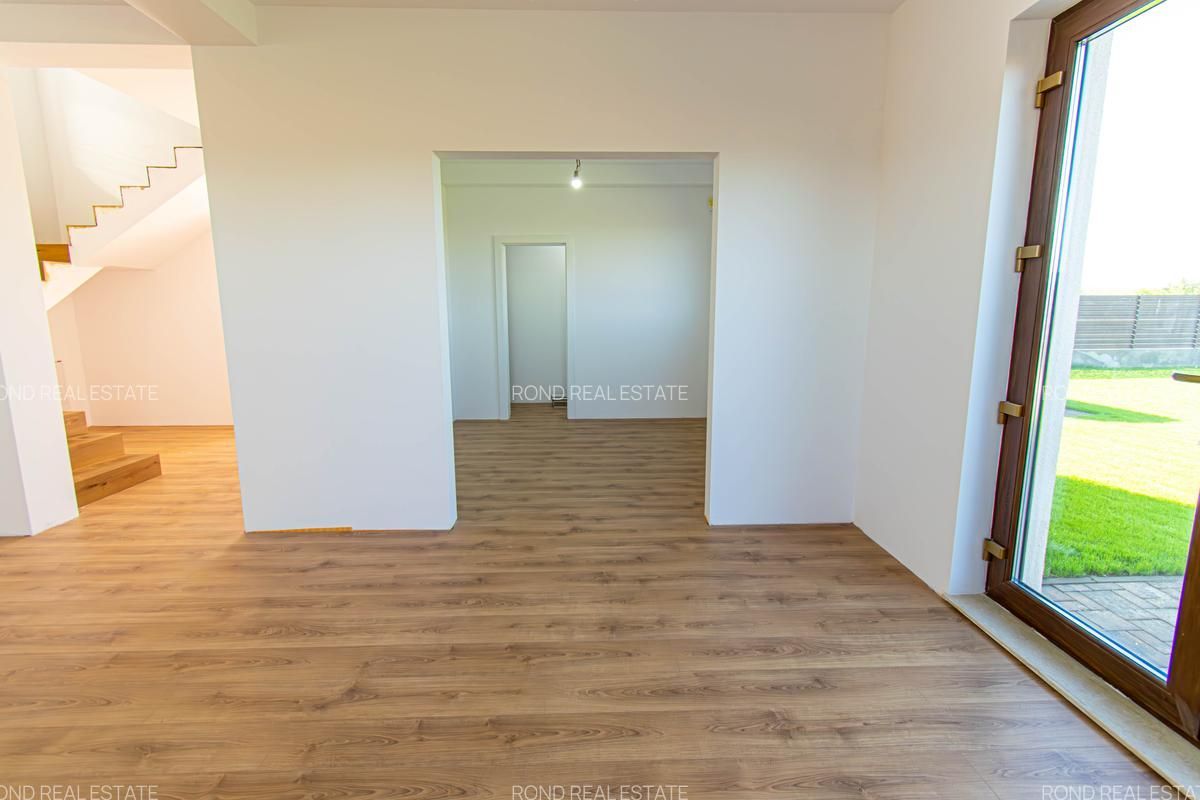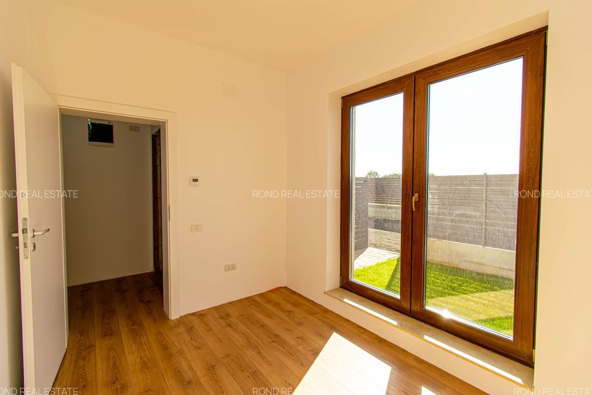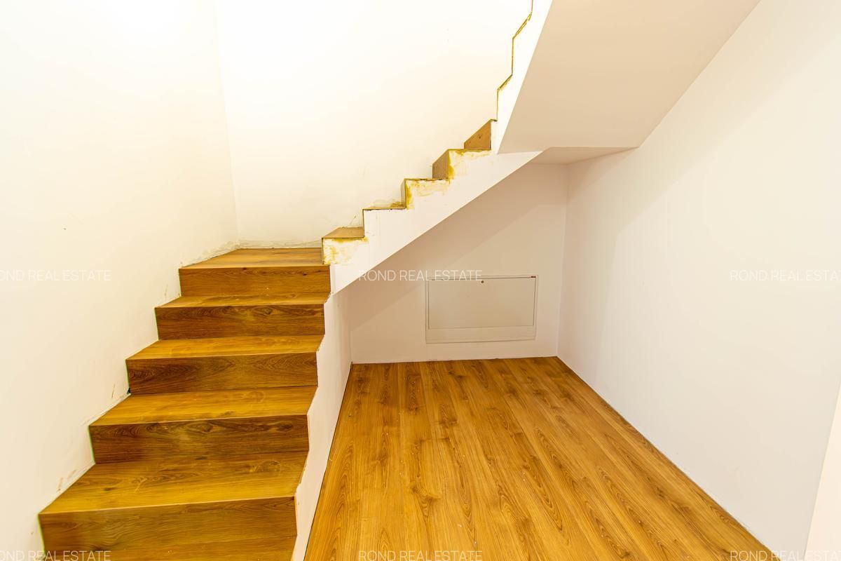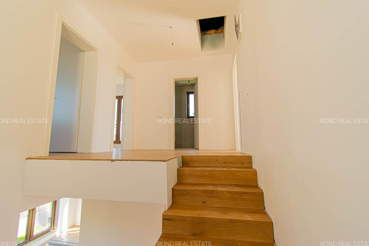 -parter: living-dinning 26mp, bucatarie semiinchisa/inchisa 10.15p, cu camera tehnica de 3.5mp, birou 8.65mp, baie cu cabina de dus 4.8mp, depozitare sub scara si o terasa care poate fi acoperita la cerere in suprafata de 14mp