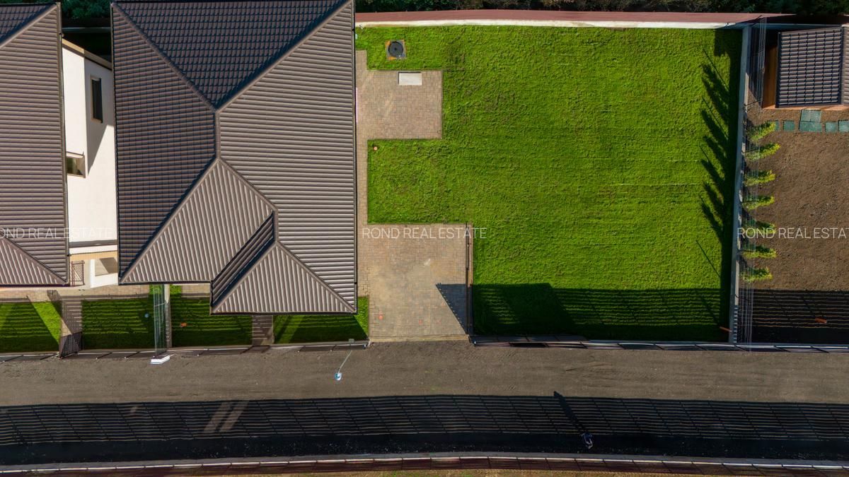 • Curtea nivelata, amenajata cu gazon insamantat si sistem de irigatii.