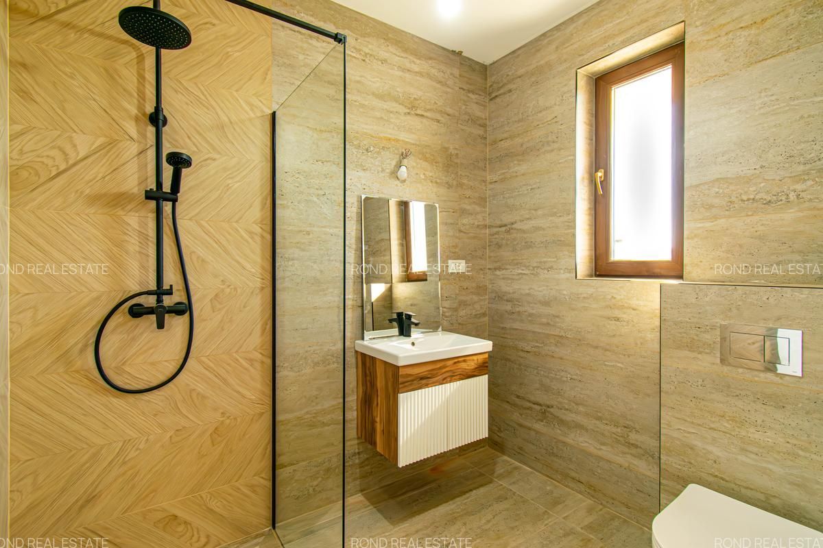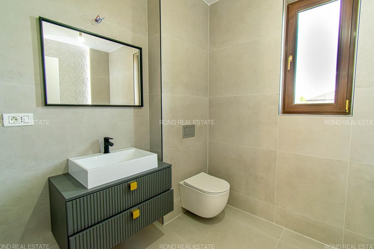• Baia de la parter si cea matrimoniala vor fi cu cabina de dus , iar cea de pe hol cu cada si baterie freestanding, mobilier, oglinzi, Wc-uri suspendate